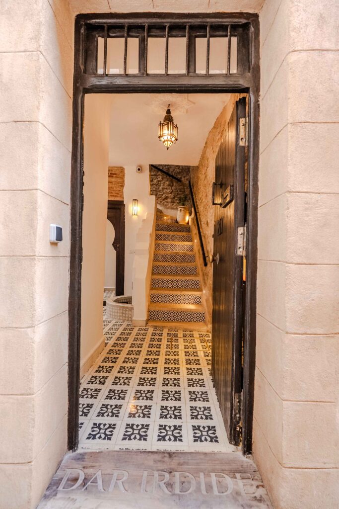 C’est en plein cœur de la médina d’Essaouira que Dar Irdide vous ouvre ses portes. Situé sur la côte Atlantique, l’ancienne Mogador, séduit par son atmosphère paisible et sa douceur de vivre. À la croisée des cultures africaines, arabes et européennes, Essaouira a toujours été une terre d’échange et de liberté, où le temps semble ralentir. C’est dans cet esprit que Dar Irdide a été pensée : pouvoir accueillir des visiteurs du monde entier et leur faire partager la richesse culturelle de la région.